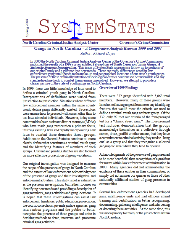 Gangs in North Carolina - A Comparative Analysis Between 1999 and 2004
